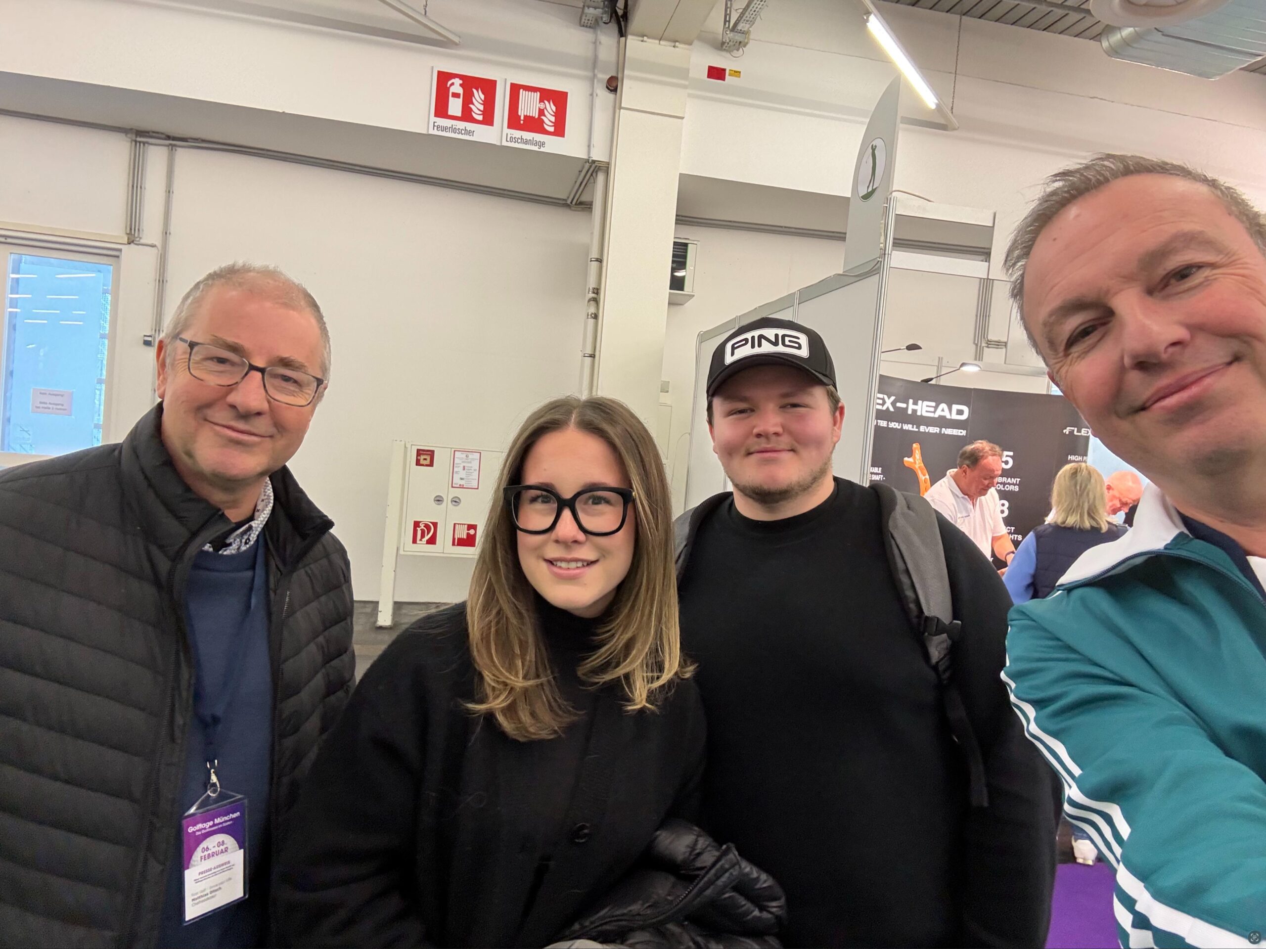 Matthias von First Golf – Drive Your Life, Teena, Korbinian Pro-Golfer auf der Challenge Tour und Karsten von Yepgolf Golf-Simulator Event-Service (v.l.n.r.)